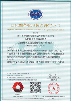 兩化融合管理體系評定證書
