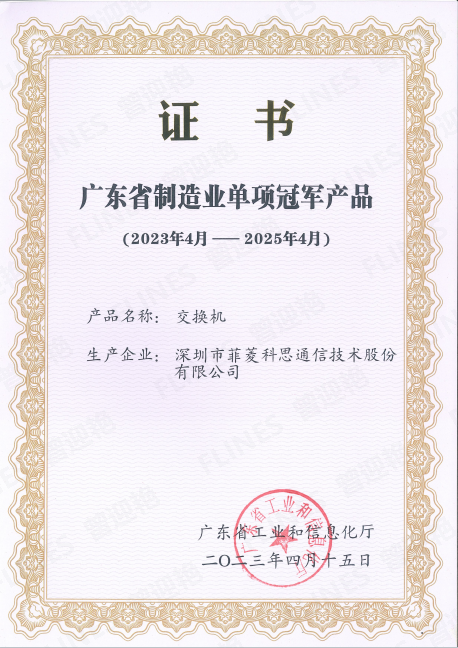 廣東省製造業單項冠軍產品證書